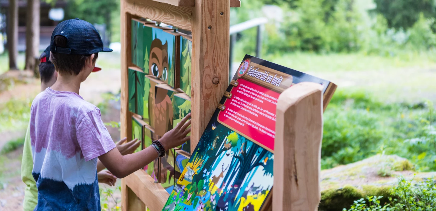 This trail, consisting of 11 stations made of local wood, invites visitors of all ages to explore the issues surrounding the forest and its importance for the Alpine ecosystem. Attractions include a giant memory game, quizzes, and a variety of other interactive games. At each station, families can learn while having fun with Sylvette, the charming little owl who is the trail’s mascot. The activity takes a playful approach to raising public awareness of the forest, its purpose, its fauna and flora, and the jobs associated with it. The themes covered range from the history of the forest to climate change, the animal world, natural hazards, and the production of local wood.