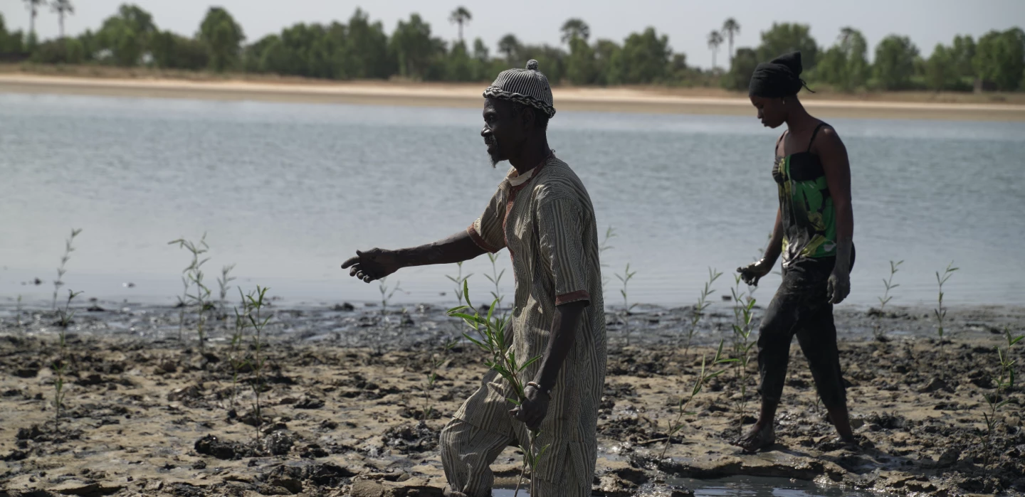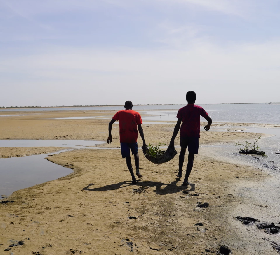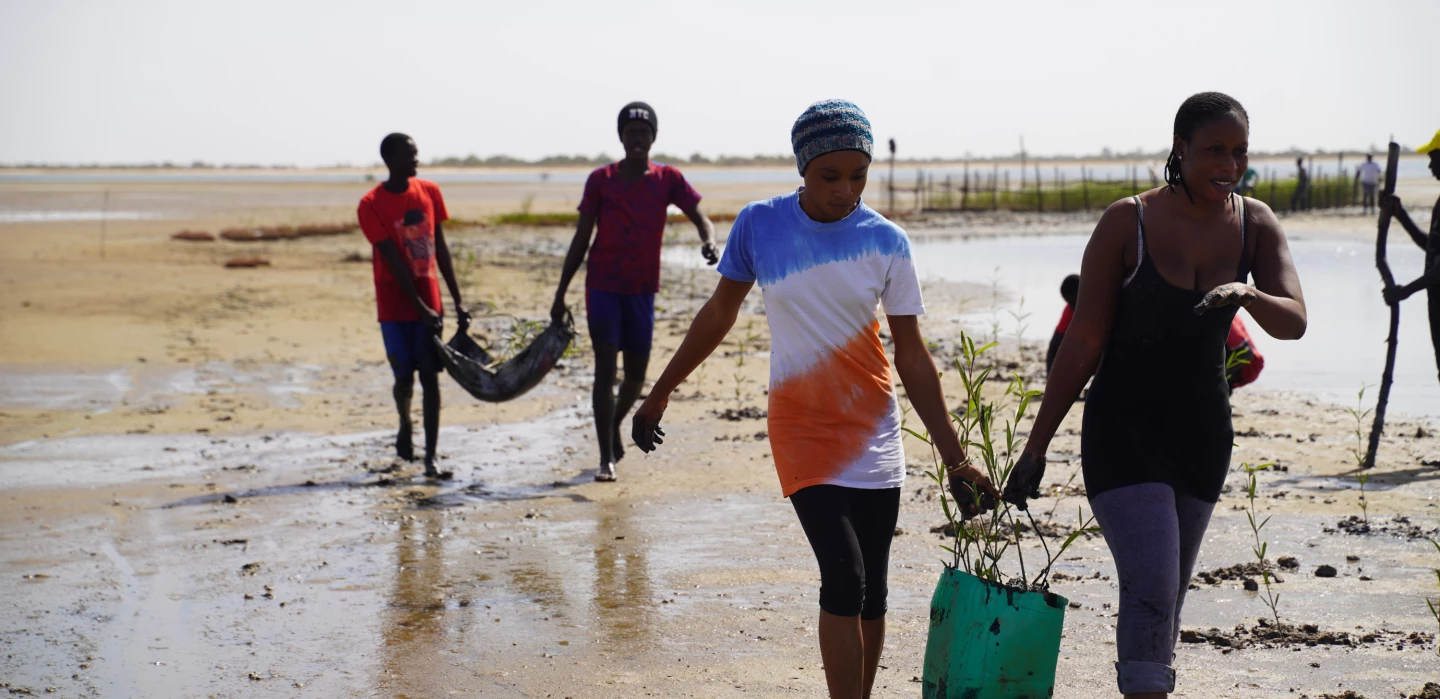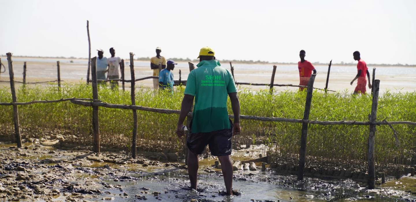 Mangroves are central links in the ecosystem and socio-economic balance, both along the estuary and in the Senegalese hinterland. As an irreplaceable biodiversity and resource niche, a barrier against coastal erosion, salt contamination of land and aquifers, and a true carbon sink, mangroves provide unequalled ecosystem services. Their restoration helps to rebuild the natural protective barrier in the estuary with the aim of limiting the phenomenon of soil salinisation in the hinterland.