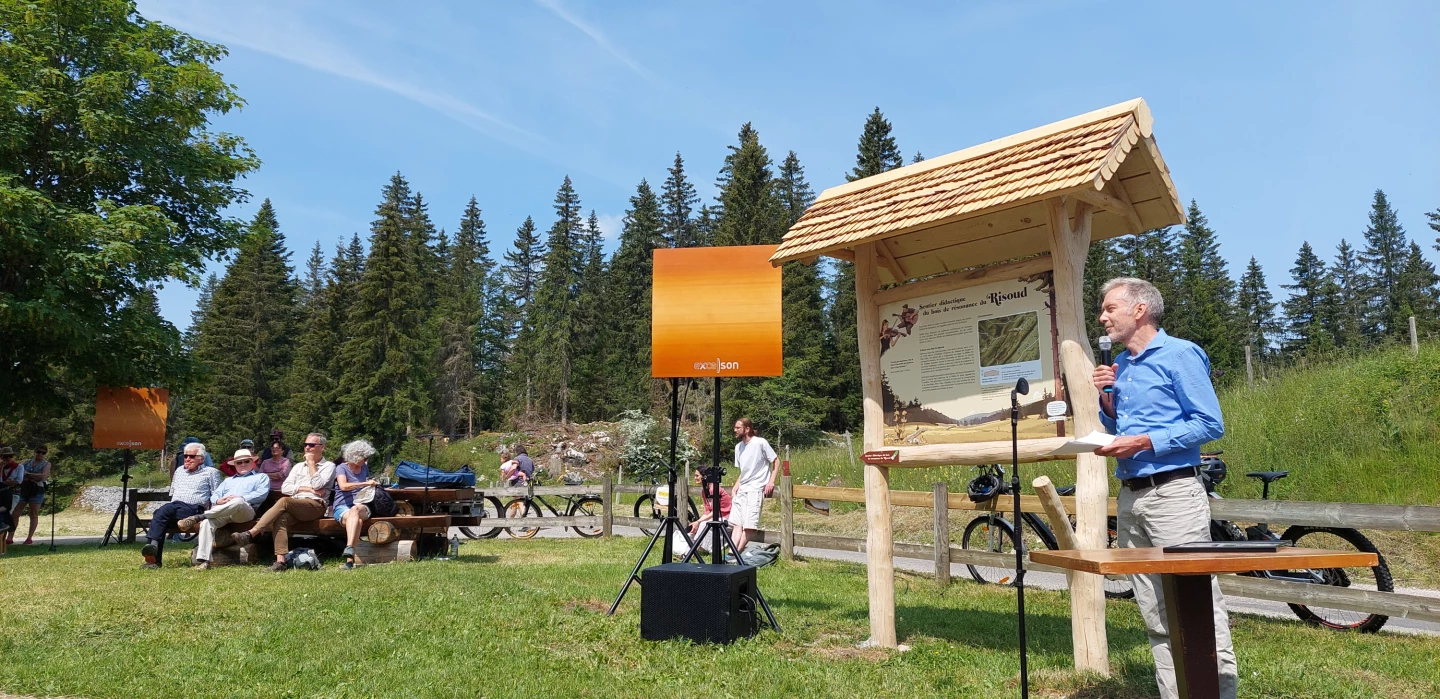 Mis en place par la commune du Chenit, Vallée de Joux Tourisme et le Parc naturel régional Jura vaudois, le Sentier didactique du bois de résonance du Risoud a pour vocation de valoriser l’épicéa de résonance ainsi que l’ensemble de la filière forestière qui en dépend. De multiples acteurs interviennent dans la production et la transformation de cette ressource, à l’instar des inspecteurs cantonaux, des gardes forestiers ou encore des cueilleurs d’arbres de résonance, dont le métier est inscrit sur la liste du Patrimoine immatériel et traditions vivantes du canton de Vaud.